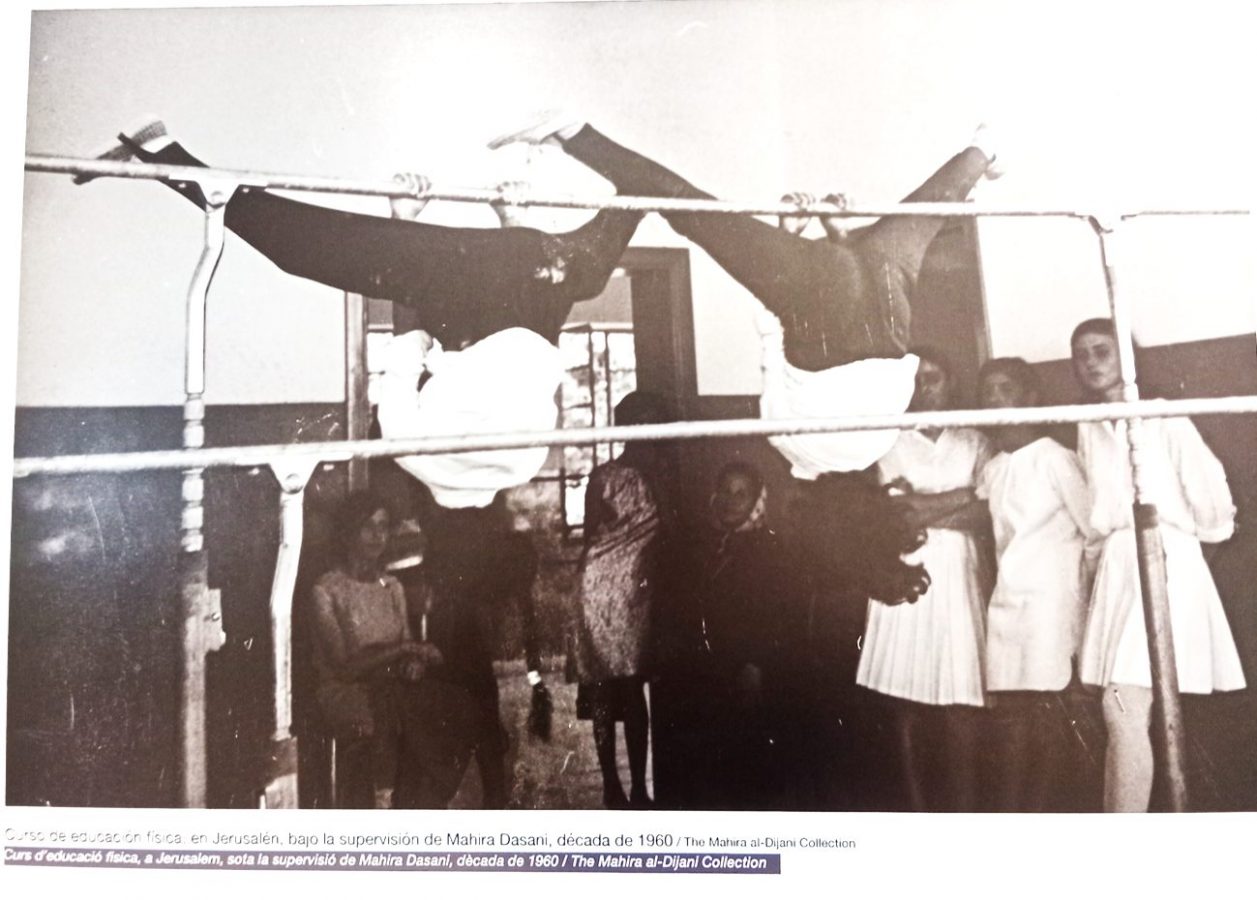 La fotografia mostra un curs d’educació física a Jerusalem durant la dècada de 1960, sota la supervisió de Mahira Dasani. En un període marcat per la inestabilitat política i social posterior a la Nakba de 1948, l’educació palestina va jugar un paper clau en conservar la identitat col·lectiva i en la cohesió social malgrat les adversitats.