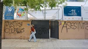 La ràbia i la impotència es respiraven als voltants del centre escolar de la joveIrlandeses de Loreto, a pocs passos de l’edifici on residia i des del terrat del qual es va llançar el dimarts. També una sèrie de pintades a la façana del col·legi mostren l’enuig de la comunitat, amb missatges en què es pot llegir «còmplices», «assassins» o «sempre estaràs als nostres cors, Sandra»