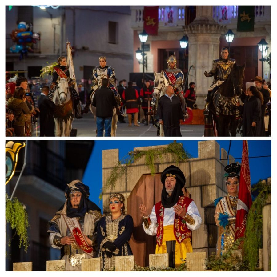 L’entrada, la processó i les “baixaetes del cantalar” són un altre dels pilars fonamentals de la festa. Els carrers es transformen en un escenari on les marxes tant mores com cristianes i els pasdobles s’entremesclen amb les vestimentes i les seues formes pròpies de desfilar, fent vibrar tant festers com visitants. És en eixos moments quan molts comencen a entendre com pot una marxa posar els pèls de punta, ja que darrere de cada nota musical hi ha uns records, unes vivències i unes anècdotes úniques que mai haguéres imaginat